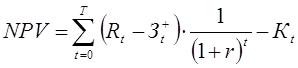 На практике часто пользуются модифицированной формулой для определения NPV. Для этого из состава Зt исключают капитальные вложения и через Зt+ обозначают затраты на t-ом шаге при условии, что в них не входят капиталовложения. Тогда: