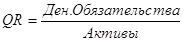 Коэффициент быстрой ликвидности (коэф. лакмусовой бумажки, Quick Ratio, Acid Test Ratio, QR) - финансовый коэффициент, равный отношению высоколиквидных текущих активов и текущих обязательств компании. Рассчитывается по данным баланса фирмы как частное от деления суммы денежных средств, краткосрочных инвестиций и дебеторской задолженности на текущие обязательства. Характеризует способность компании отвечать по своим текущим обязательствам с использованием наиболее ликвидных (обращаемых в деньги) активов.
