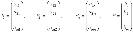 состоят соответственно из коэффициентов при переменных и свободных членов.