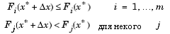 Отметим, что поскольку F(x) является неким вектором, то любые компоненты F(x) являюся конкурирующими и отсутсвует некое единое решение поставленной задачи. Взамен этого, для описания характеристик целей вводится концепция множества точек неулучшаемых решений (41) (так называемая оптимальность по Паретто (4),(6)). Неухудшаемое решение есть такое решение, в котором улучшение в одной из целей приводит к некому ослаблению другой. Для более точной формулировки данной концепции рассмотрим некую область допустимых решений
