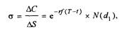 где С – премия опциона "колл", S – курс исходного актива, rf – процентная ставка исходного актива, T-t – число дней, N(d) – функция суммированной плотности нормального закона: