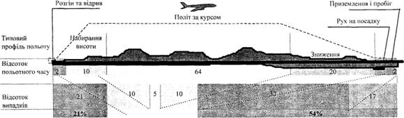 Рис. 13.1. Розподіл ризиків за етапами польоту