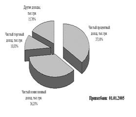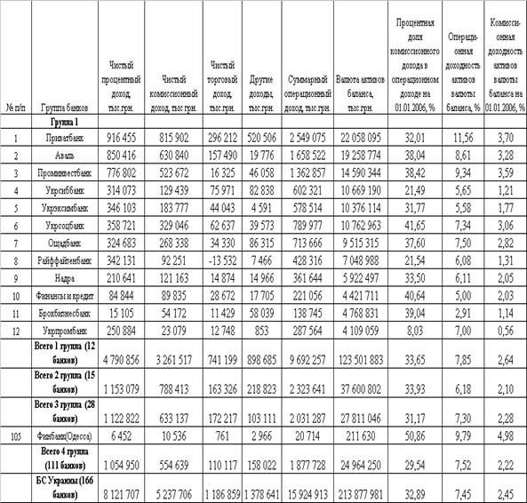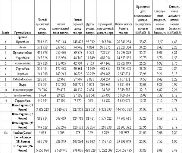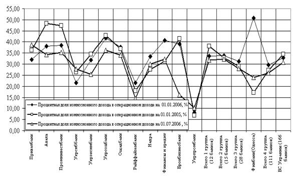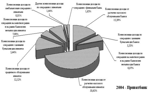 Таким образом, суммарная процентная доля указанных 4-х секторов комиссионных доходов АКБ «Приватбанк» в 2005 – 2006 годах составила 97,6-99,34 % и определяет стратегическое направление развития комиссионных доходов в банке.