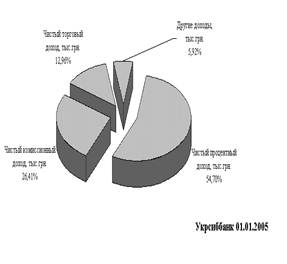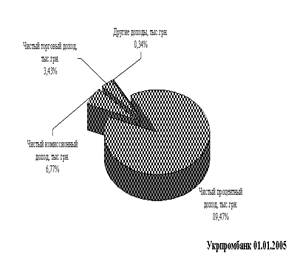 Как показывает анализ рисунка 2.10, в АКБ «Аваль» 95,25% комиссионных доходов реализуется только в двух секторах банковских услуг – расчетнокассове обслуживание и операции для клиентов на валютном рынке, т.е. характерные для АКБ «Приватбанк» сектора кредитного обслуживания и операций с ценными бумагами клиентов в комиссионных доходах АКБ «Аваль» практически отсутствуют.