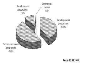 На рисунке 2.5 представлены данные по поквартальной динамике абсолютных величин комиссионных доходов и комиссионных затрат в АКБ «Приватбанк» в 2003 –2006 годах.. На рисунках 2.6 – 2.9 представлена структура комиссионных доходов АКБ «Приватбанк» в 2003 –2006 годах.