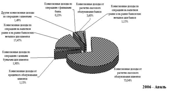 Для сравнительного анализа на рисунке 2.10 приведена постатейная структура комиссионных доходов в АКБ «Аваль» в 2006 году.