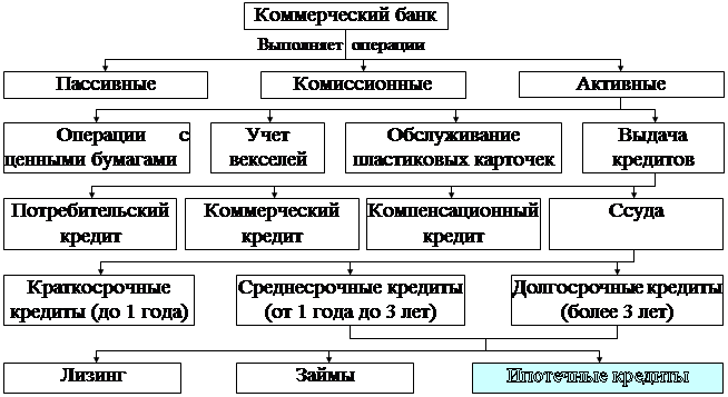 В России в настоящее время ипотечных банков очень мало, как правило, ипотечные кредиты выдают универсальные банки. В этой связи представляется целесообразным определить место ипотечного кредита в системе операций коммерческого банка.
