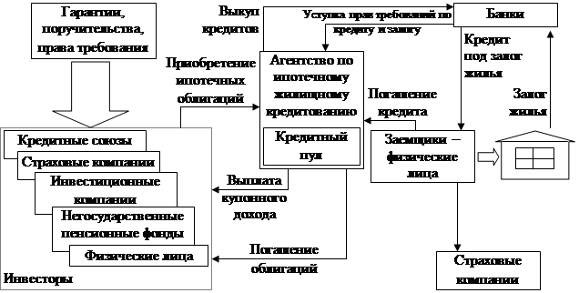 Схема ипотечного кредитования представляет собой согласованную совокупность организационных и финансовых связей между субъектами, участвующими в соответствующих кредитных отношениях, возникающих в процессе движения финансовых ресурсов, гарантий и прав требования.
