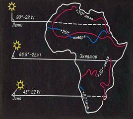 Рисунок 4 – Пример изображения высоты солнца над горизонтом и времён года в Африке, нарисованного на классной доске (Громов, 1979) (9).