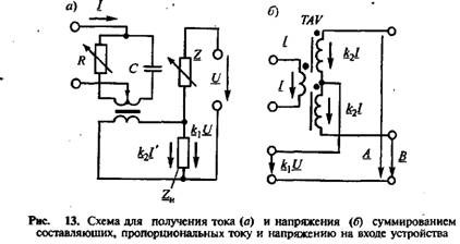, Если это ток, то для получения к21 используют рассмотренную фазоповоротную схему. Преобразовать напряжение в ток можно путем включения в цепь сопротивления На рис. 13, а показана схема, состоящая из двух цепей. На вход одной подается напряжение Л, а на вход другой — ток /. Цепи соединены параллельно, и этим достигается получение в нагрузке Z„ суммарного тока