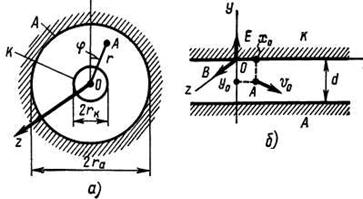 Рисунок 1.2 - К расчету движения электронов в цилиндрическом и плоском магнетронах со сплошным анодом в статистическом режиме. Электрон находится в точке А