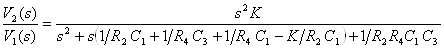 Для схемы фильтра с многопетлевой обратной связью передаточная функция по напряжению имеет вид (учитываем что К стремиться к ∞):