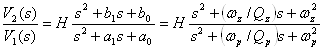 В этом выражении Н0 — коэффициент передачи на бесконечно большой частоте, ωn – собственная частота, Q –добротность.