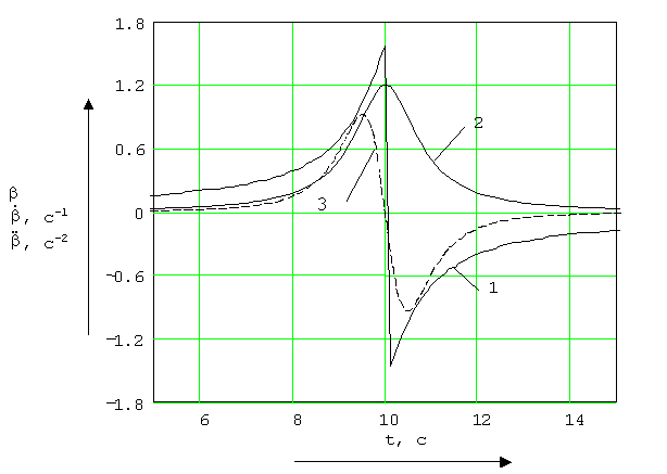 4. Определение зависимости скорости и ускорения наведения АОП от дальностиОпределим угловые скорости и ускорения привода, моменты времени, когда они достигают экстремальных значений.
