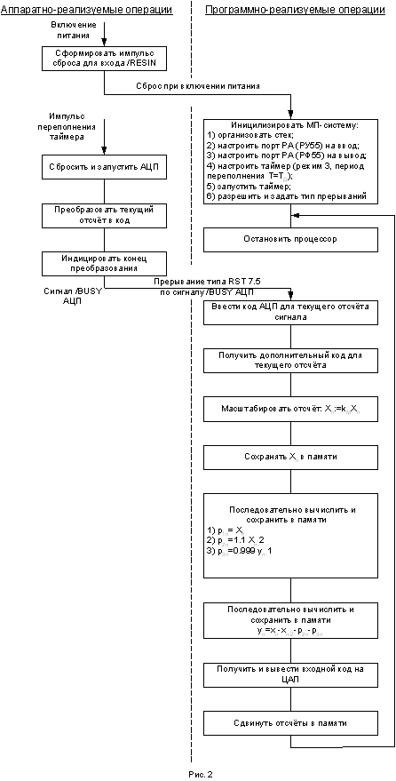 Последующие операции (ввод, вывод, преобразование кодов, оперативные обращения к памяти, арифметические преобразования) в каждом цикле работы фильтра выполняются под управлением рабочей программы фильтра.