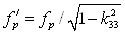 Коэффициент электромеханической трансформации (КЭМТ) для сплошного преобразователя при продольном пьезоэффекте равен: