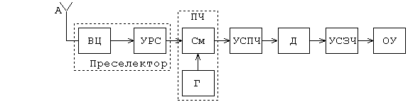 Рисунок 1. Структурная схема приемника супергетеродинного типа