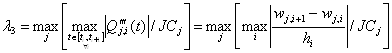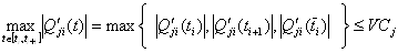 Между двумя узловыми точками ускорение линейно зависит от времени. Поэтому максимальная абсолютная величина ускорения достигается в точке ti или в точке ti+1 и равна максимальной из величин