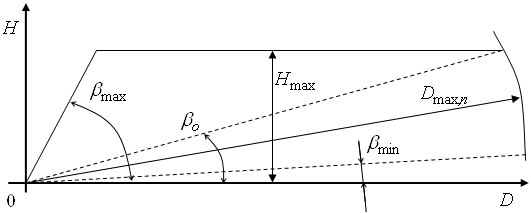 Переріз огляду в вертикальній площині наведено на рис.1, де