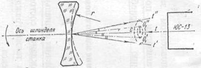 смещены относительно оси шпинделя станка и при вращении шпинделя описывают окружности. Смещения центров кривизны с оси вращения шпинделя наблюдают и измеряют с помощью автоколлимационной центрировочной трубки ЮС-13, разработанной А.А. Забелиным.