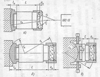 Разнообразные оптические приборы имеют самые различные конструкции объективов: от двух-, трехлинзовых объективов телескопических приборов до сложных многолинзовых фотообъективов с переменным фокусным расстоянием. Конструктивные особенности объективов накладывают отпечаток на способ их сборки.