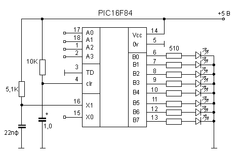 Порт B имеет 8 разрядов PB7-PB0 и программируется при помощи регистра TRISB, имеющего адрес 86h.