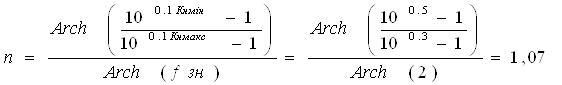 Определяем порядок фильтра Чебышева по формуле (1):