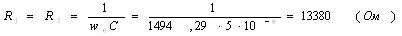 Частоту w0 можно настроить с помощью элементов R1, R2, C1 и С2 (2):