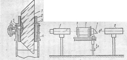 Иногда между зеркалом и крышкой помещают картонную или пресс-шпановую прокладку 5 (рис 4, а). Аналогично собираются призмы, например при помощи прижимной планки 1, пружины 2 и крышки 3 (рис 4, б).