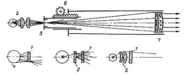 Осветительное устройство состоит из источника света - электрической или дуговой лампы, или из источника света к конденсора.