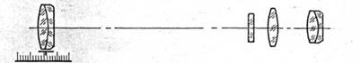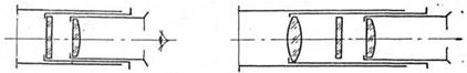 Диоптрийная трубка (рис.7.) применяется как наблюдательная труба в контрольно-юстировочных приборах и для контроля шкалы диоптрий телескопической системы. Трубка состоит из двухлинзового склеенного объектива с фокусным расстоянием 50-100 мм и окуляра (так как поле зрения и удаление входного зрачка не требуются большими, имеет общее увеличение 2-4х).
