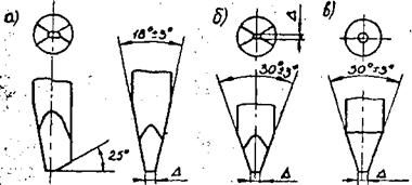 Для гравирования штрихов до 2 мм применяют алмазные резцы, а для более широких штрихов – стальные, из углеродистой стали марок У 10А и У 12А, легированной хромистой стали ХГ, хромокремнистой стали ХБ5 и ОХС. Резцы затачивают либо в форме пирамиды (рис.9 в, б), либо в форме конуса (рис.9 в) на точильных камнях, затем их закаливают и отпускают, доводят окончательно грани и притупляют до заданного размера Δ при помощи пасты на стеклянной плите. Притупляют резцы для того, чтобы избежать царапин поверхности детали и для получения определенной ширины штрихов элементов сетки.