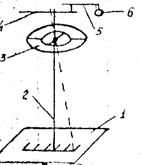 1-мира; 2-конденсор; 3-матовое стекло; 4-молочная лампочка; 5-точечная диафрагма; 6-коллиматор