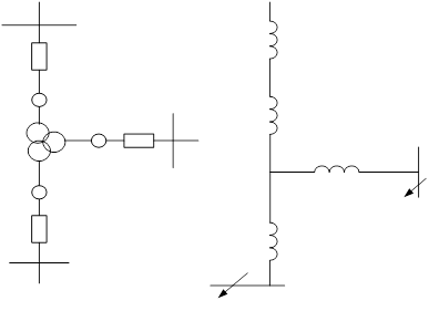 2. Выполним расчёты по определению максимальных Iкmax и минимальных Iкmin токов при трехфазном к.з. на стороне тяговой и районной обмоток трансформатора. Эти значения токов к.з. необходимы для отстройки защиты от максимальных токов небаланса Iнб при внешних к.з. и определения коэффициентов чувствительности защит.