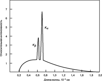 Как уже говорилось выше, характеристическое рентгеновское излучение состоит из серий спектральных линий высокой степени монохроматичности, определяемых материалом анода. С помощью фильтров можно выделить наиболее интенсивные из них. Поэтому, выбрав соответствующим образом материал анода, можно получить источник почти монохроматического излучения с очень точно определенным значением длины волны. Длины волн характеристического излучения обычно лежат в диапазоне от 2,285
