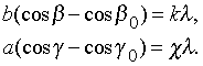 Это – три фундаментальных уравнения Лауэ для дифракции рентгеновского излучения, причем числа h, k и c – индексы Миллера для плоскости дифракции.