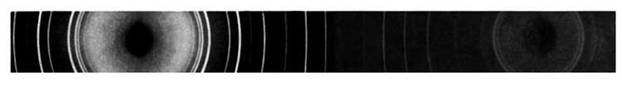 Рис. 8. ДЕБАЕГРАММА получается путем пропускания рентгеновского излучения через поликристаллический образец. Каждая линия обусловлена дифракцией рентгеновского излучения на одной конкретной плоскости атомов образца.