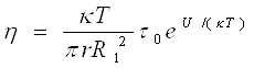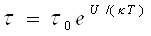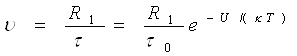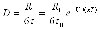 де τ0 — період коливань молекули біля положення рівноваги; U— висота потенційного бар'єру, який відділяє один від одного два сусідні положення рівноваги; k— постійна Больцмана; T— термодинамічна температура. Числове значення τ залежить від будови і в'язкості рідини. По теоретичних розрахунках І. 3. Фішера, для аргону поблизу потрійної точки τ = 2,3 · 10-13 с; для води при кімнатній температурі τ = 10-10 с, τ0= 1,4 · 10-12 с. Отже, кожна молекула води здійснює близько 100 коливань щодо одного і того ж положення рівноваги, перш ніж змінити місце.