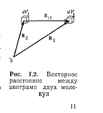 Нехай система з N однакових атомів займає об'єм V. Виберемо в ньому два елементи об'єму dV1 і dV2 що фіксуються векторами R1 і R2 проведеними з деякої точки (мал. 1.2).