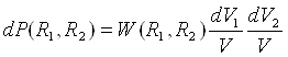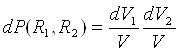 Якщо взаємне розташування атомів хаотичне, то вірогідність того, що атом 1 знаходиться в елементі об'єму dV1 а атом 2в той же час в dV2, через незалежність їх положень рівна: