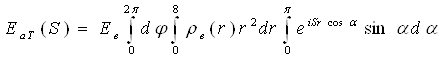 Щоб додати йому конкретніший вигляд, припустимо, що розподіл електронів в атомі сферично симетричний і ρ(r) залежить тільки від модуля вектора r, але не від його напряму. В цьому випадку елемент об'єму dV = r2drsinαdαdφ. Вираз (31) можна написати у вигляді