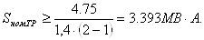 Потужність трансформатора двотрансформаторної підстанції визначається з врахуванням допустимого перевантаження трансформатора на 40% під час аварійного вимкнення одного з трансформаторів в максимальному режимі роботи.