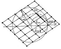Формирование дифракционной картины происходит при рассеянии излучения с длинами волн от l min = l 0 = 12,4/U , где U- напряжение на рентгеновской трубке, до l m - длины волны, дающей интенсивность рефлекса (дифракционного максимума), превышающую фон хоть бы на 5 %. l m зависит не только от интенсивности первичного пучка (атомного номера анода, напряжения и тока через трубку), но и от поглощения рентгеновских лучей в образце и кассете с пленкой. Спектру l min - l m соответствует набор сфер Эвальда с радиусами от 1/ l m до 1/l min , которые касаются узла 000 и ОР исследуемого кристалла (рис.1).