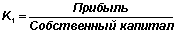 1. Коэффициент доходности капитала (К1) исчисляется как отношение чистой прибыли к собственному капиталу: