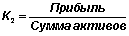 2. Коэффициент прибыльности активов (К2) характеризует объем прибыли, полученный на каждый рубль активов: Этот показатель характеризует степень прибыльности всех имеющихся активов, чрезмерно высокое значение которого может говорить о рискованной политике кредитной организации при размещении своих активов.