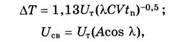 де ∆T — підвищення температури матеріалу з освітленого боку, °С; UT— кількість світлового випромінювання, яке поглинається одиницею поверхні матеріалу (тепловий імпульс), кДж/м2; λ — коефіцієнт теплопровідності, кВТ/(mК); CV — питома теплопровідність речовини, кДж/(м3 • К); tn = 0,02 3√g — час початку найбільшої температури вогненного імпульсу; g - потужність вибуху, Мт; А - коефіцієнт поглинання світлової енергії матеріалом; λ - кут між напрямком поширення світла і перпендикуляром до освітленої поверхні.