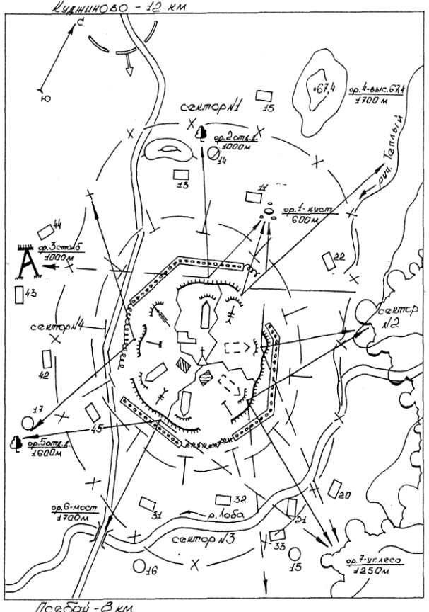 – секторы обстрела, ориентиры на местности и дальности до них;