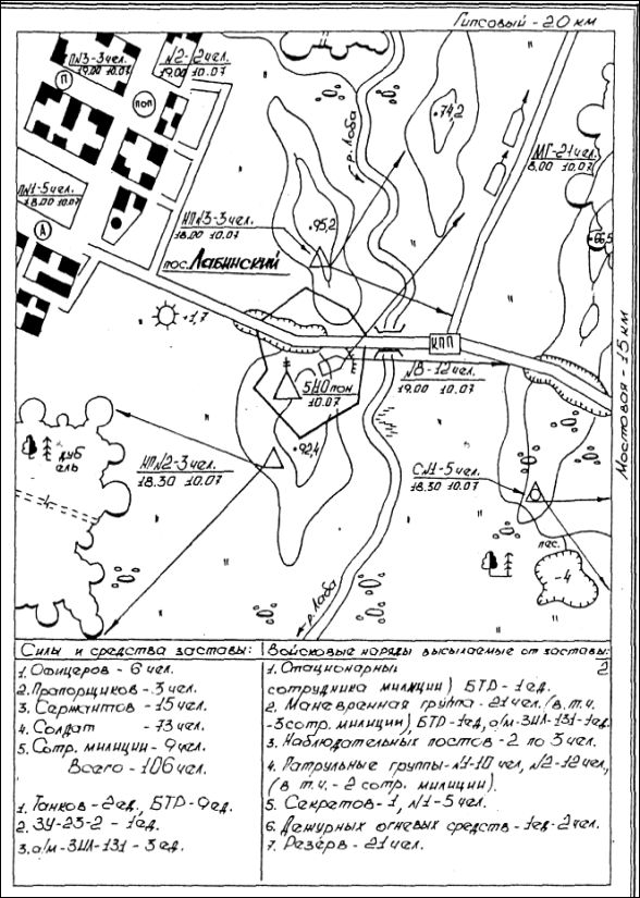 – подготовить схему опорного пункта заставы (решение), которое уточнить по прибытии к месту несения службы;