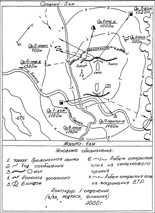 – зоны огня противотанковых средств и сплошного многослойного огня всех видов оружия для уничтожения в первую очередь танков и других бронированных машин незаконных вооруженных формирований;