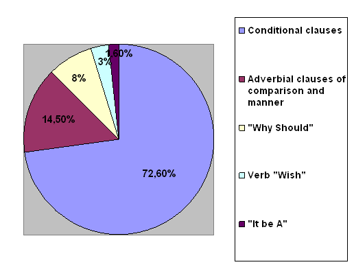 The 4th place 3% that is taken by the sentences where the Subjunctive Mood is introduced by the verb «wish».
